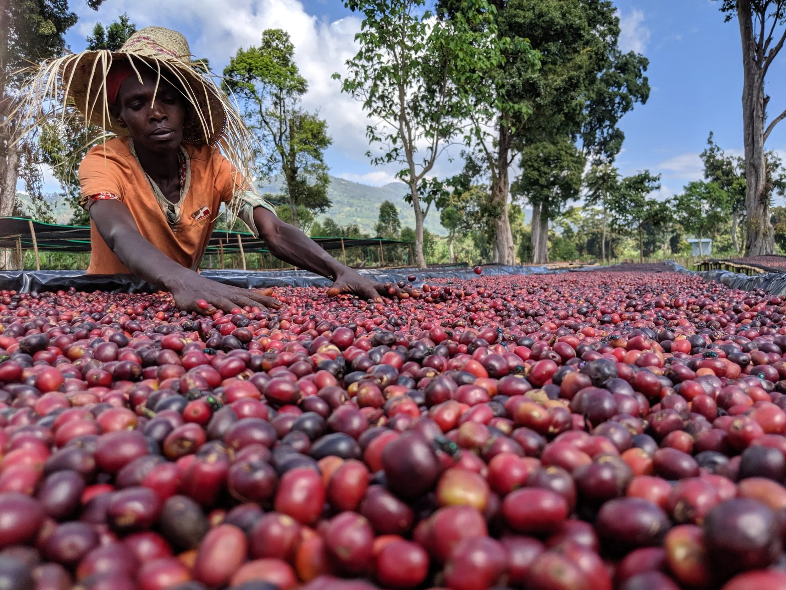 This natural lot comes to us from the Shantawane Washing Station in Sidama, Ethiopia. Located between 2000–2200masl, Shantawene can be found near the base of the Bombe mountain in Southern Ethiopia. The station pays premiums to smallholder farmers to deliver extremely high-quality and freshly picked cherries. In turn, the majority of coffee is delivered to the station from growers in the nearby villages of Shantawene and Bombe and doesn't have to travel far. Upon arrival at Shantawene, the cherries are evaluated based on color, ripeness, and density before being floated. The cherries are then dried on raised beds and rotated consistently to ensure even drying. Once they reach their ideal moisture level, the coffee is prepared for export.